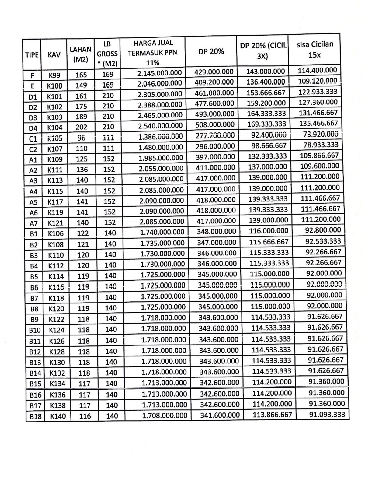 – Harga: +- 1,7xxM (Termasuk PPN)